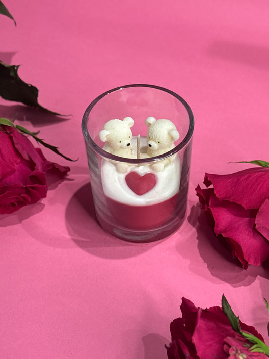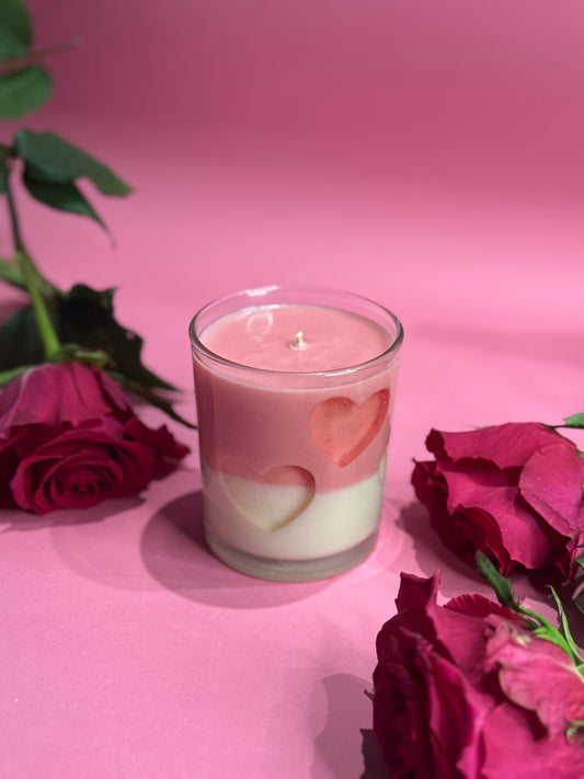 Spalvų paletė – sodri raudona, švelni rožinė ir pieniška balta – atspindi meilės šilumą, artumą ir saldžias akimirkas. Kiekviena žvakė tampa ne tik kvapo, bet ir vizualiu akcentu – detale, kuri papildo namų erdvę šiluma ir meilės jausmu.
